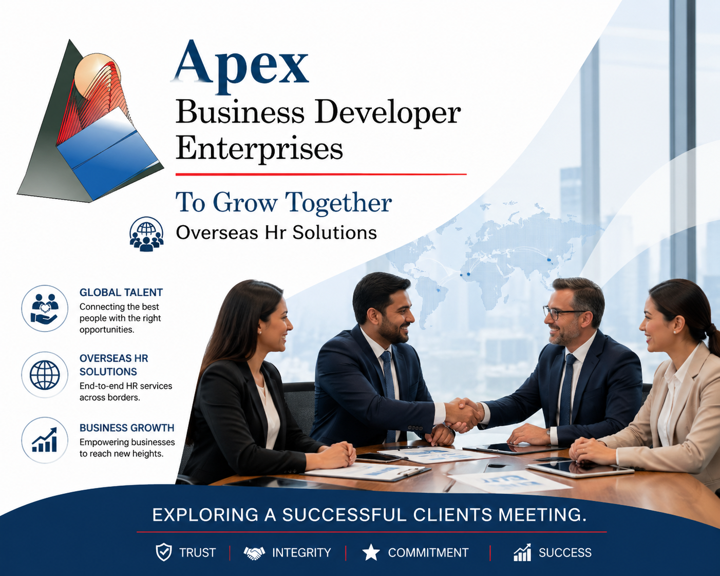 In continuation, we at Apex Business Developer Enterprises(ABDE), the leading multinational company takes great delight in assisting clients in achieving their goals. Be it recruitment, healthcare, IT, skill testing trade center, outsourcing, facility management, logistics, our main vision has always been to serve the best to our clients both in India and abroad. And we have our presence in more than 10 + countries such as in Middle East, Europe, Asia, Africa and are moving towards opening in many other locations.